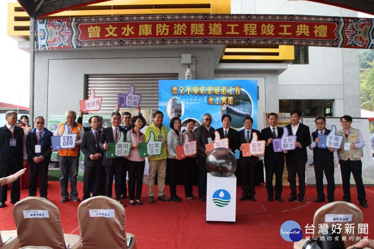 行政院長賴清德28日由政務委員徐國勇、經濟部次長王美花、台南市代理市長李孟諺、嘉義縣秘書長張志銘、國發會顧問黃金山及水利署長賴建信等人陪同,共同啟用曾文水庫防淤隧道。賴院長肯定水利署同仁勠力完成曾文水庫防淤隧道工程,達成有效延長水庫壽命任務,並期許未來繼續推動前瞻基礎建設各項計畫。