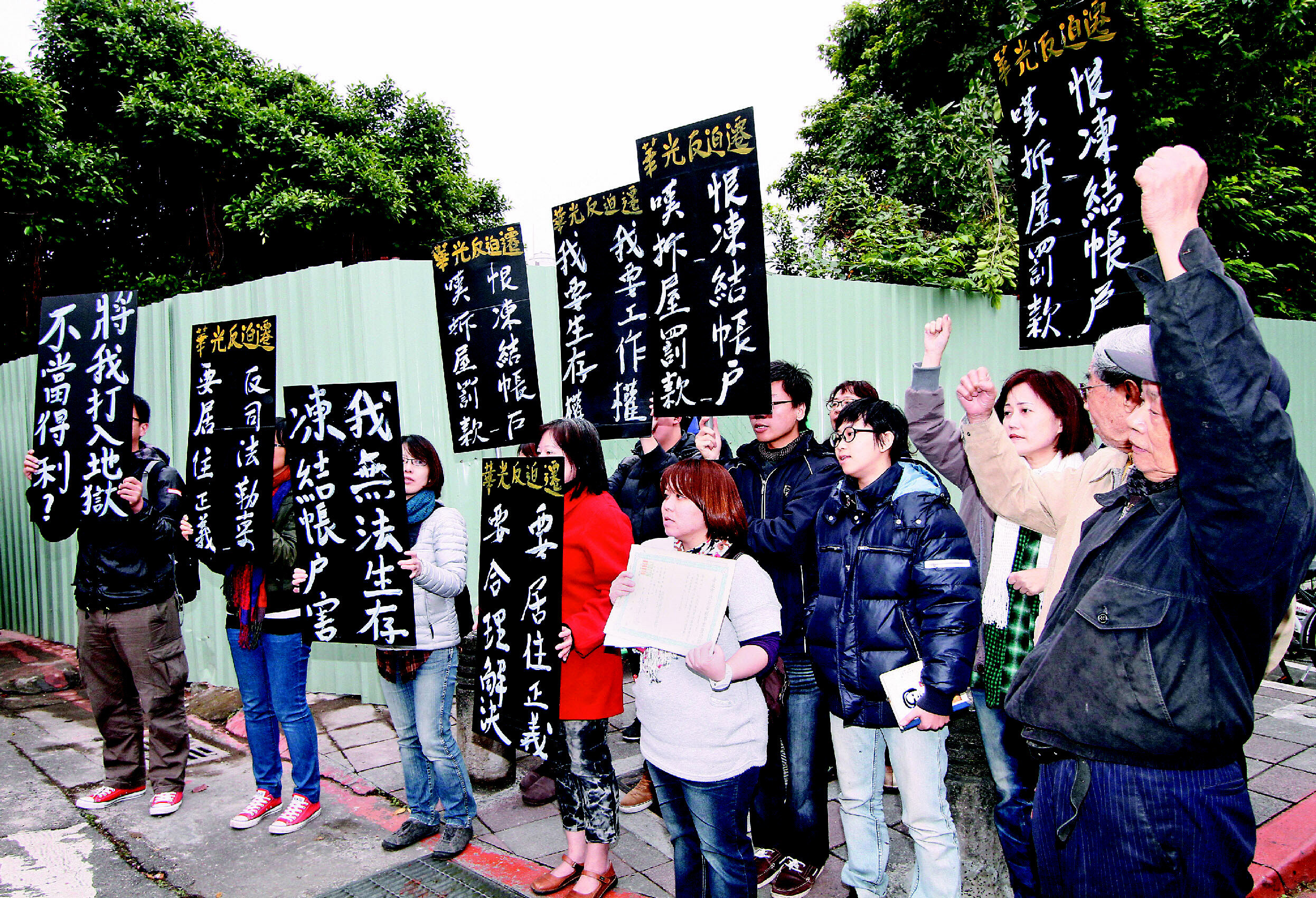 華光社區反迫遷自救會下午到場抗議,表示拆遷工作未先知會居民,誓言持續進行抗爭。 (圖/林澔一)
