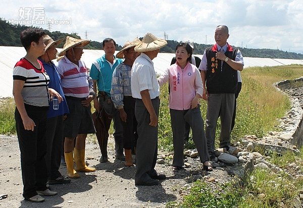 立法委員楊瓊瓔、市議員楊永昌及外埔區長劉陳吻9日會同第三河川局局長范世億、台中農田水利會與數十名當地陳情農民,前往現場會勘,農民王天義指出,農田無水溉灌叫農民怎麼耕種,希望三河局另行施作灌溉水溝,協助農民取得用水,解決農民耕種困境。