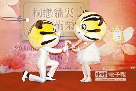 文觀局昨發布報名訊息,苗栗吉祥物「貓裏喵」化身愛情大使,在浪漫的情歌聲中,上演求婚戲碼為活動熱場,歡迎有意步上紅毯的戀人報名。今年桐花婚禮分兩階段報名,第一階段僅開放設籍苗栗縣的縣民,時間為7、8日2天的下午5點至晚上8點,及9日上午9點到12點。