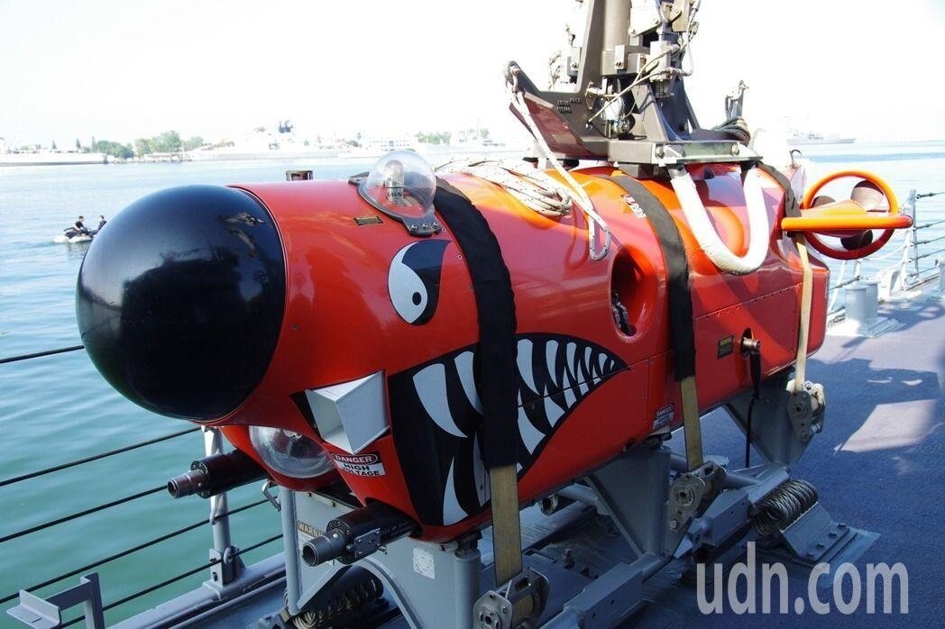 永靖級艦上的水下掃雷載具。(記者程嘉文/攝影)