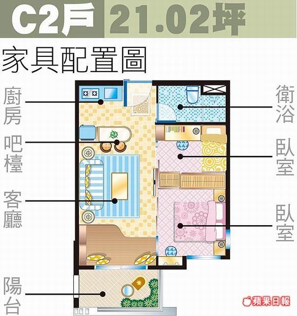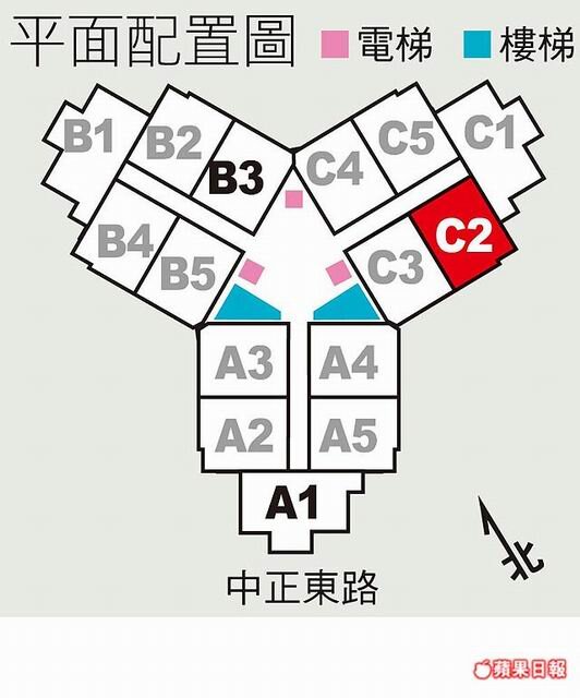 本次拍攝標準層C2為21.02坪,可規劃2房,另有吧檯設置;標準層均1面採光。A1、B1、C1戶型為蝶狀式建築外端,位置獨特戶戶擁3面採光,且高樓層視野佳。該案1樓規劃4戶樓中樓房型,坪數20~30坪,另外14樓有6戶,規劃3房,每戶46坪。