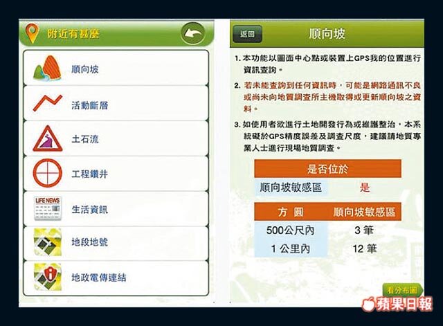 儘管政策嚴管山坡地開發,在近年又發生國道三號走山、同樣奪走人命的事故。此事件後,官方開始揭露各地區地質資訊;台北市住家地質資訊即提供民眾可以上網查詢。使用方式為民眾透過上網可至台北市大地工程處的「山坡地環境地質資訊系統」,只要輸入住家門牌號碼,就可以查詢到包括順向坡、崩塌區、河岸侵蝕、煤渣堆積、土石流、斷層破碎帶、地下礦坑及人為挖填區等8種不同資訊,幫助民眾了解地質狀況。