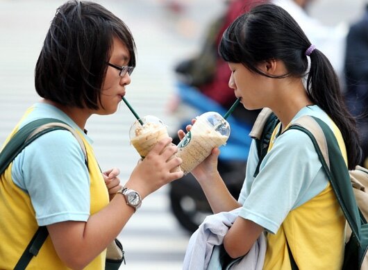 受偏南風影響,各地氣溫逐漸回暖,台北昨天出現今年入春以來30.2度的最高溫,放學的學生在馬路邊喝著冰飲解暑。(圖與文/侯永全)