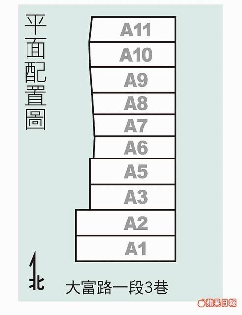 預售別墅「昌平富貴」位於大富路一段3巷、近昌平路口,基地面積330坪,規劃10戶社區型別墅,採前院停車,面寬4.5~5米,地坪28~42坪、建坪55~66坪,屋深達12.5米。