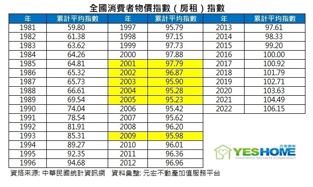 台灣房租40年來僅經歷過2次下跌。(圖/元宏不動產加值服務平台提供)