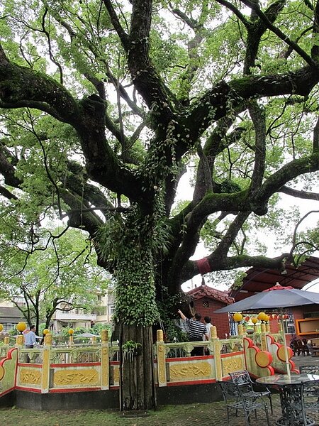 集集鎮大眾爺廟前的700餘歲珍貴大樟樹。(記者吳素珍攝)