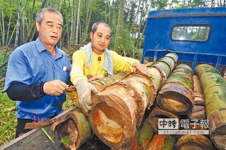 蓮華池研究中心疏伐巨竹,並擇優作為試驗用材。 (記者沈揮勝攝影)