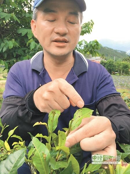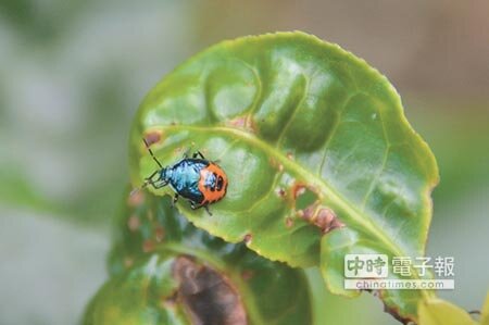 天候晴雨不定、昆蟲大量孳生,日月潭紅茶主產區魚池鄉各大茶園,受到椿象、金花蟲啃食影響(見左圖,沈揮勝攝),無毒或有機紅茶大幅減產,輕者損失2到3成,嚴重者甚至幾無收成。