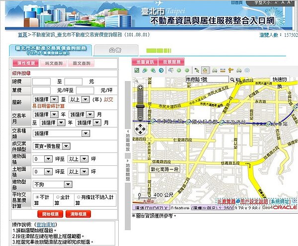 台北市地政局的實價查訊系統即(26)日起改版,方便民眾查詢。(擷取自台北市不動產資訊與居住服務整合入口網)