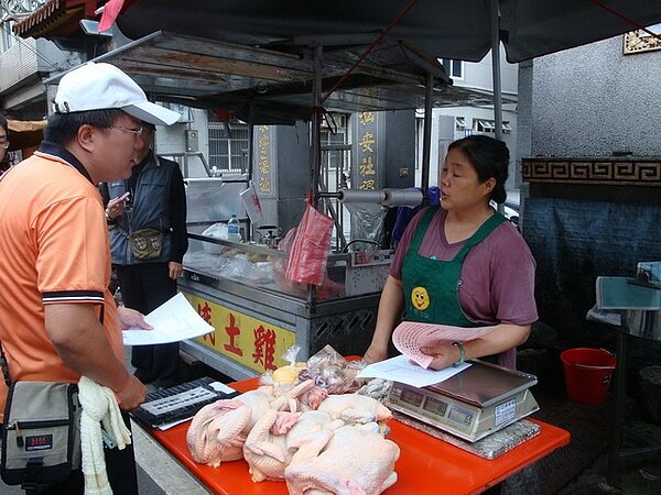 新竹縣自「禁止活禽違法宰殺、陳列/展示/販售」政策執行迄今,已稽查78個攤商,24日是執法第8天,地方聯合查緝小組到湖口鄉各市場展開稽查,共查核7家攤販,在湖口第1公有零售市場發現有一攤商私自屠宰販售,查緝小組立即依畜牧法開罰。