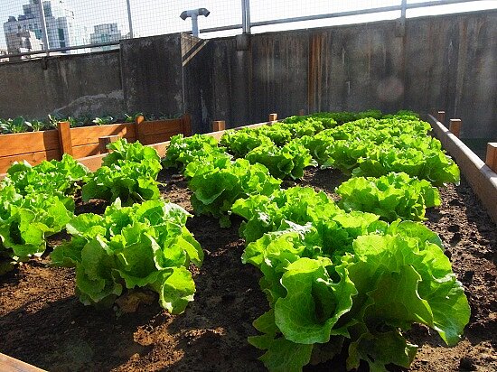 北區公所樓頂去年底設「開心農場」,供員工在下班及閒餘種蔬果,昨天農場第一次收成,區長李政峰決定贈送給洽公民眾,一同分享他們的收成喜悅。