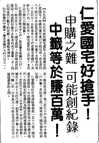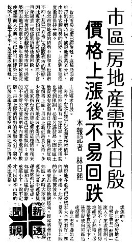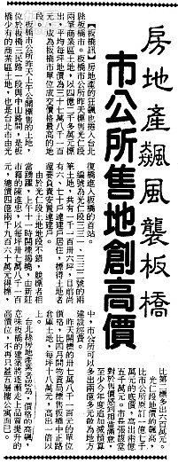 1987年民眾已經感到房價大幅上漲,甚至當年板橋土地標售也創下史上新高價。