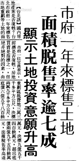 隨著北市已經升格超過10年,人口大量移入、建商大興土木,此時也已經有「土地供給不足」、「價格上漲不易回跌」的消息。