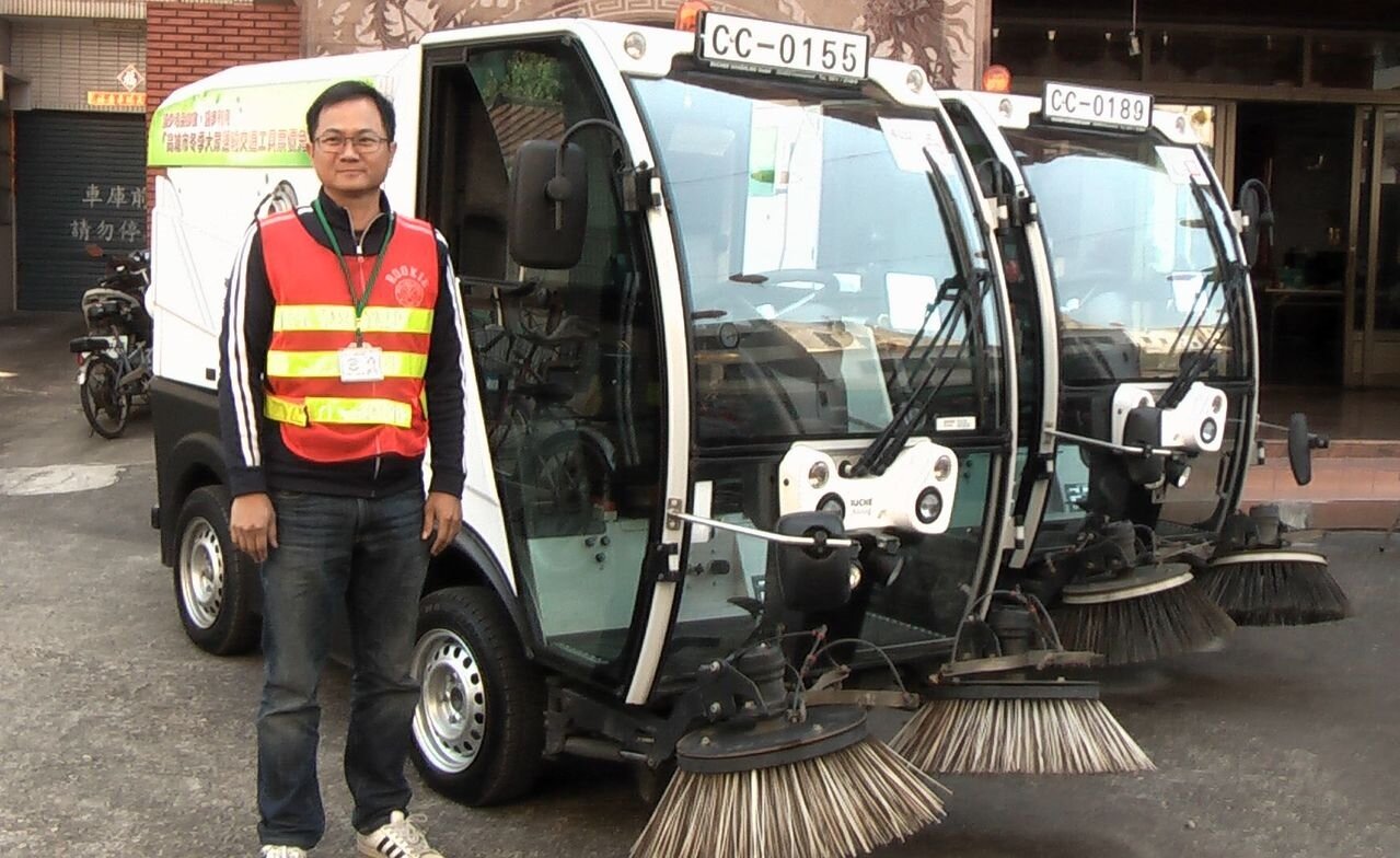 小型掃街車可鑽入小巷作業,減少揚塵降低空汙。(記者徐如宜/攝影 )