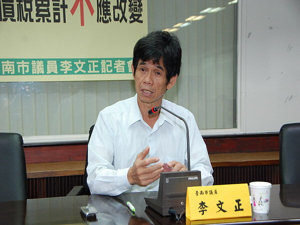 市議員李文正指出,最近他的服務處接到很多民眾陳情反應,指稅務局最近寄發1張地價稅將調整的宣導信件,如果依照稅務局的做法,把未合併之前台南縣地價稅累進起點904000元和台南市地價稅累進起點3552000元平均之後調整為1547000元,如此一來原台南市的地價稅將會增加。根據台南稅務局的預估1年將會增加3億左右的稅收,他們都認為政府只會從人民身上來搶錢,讓他們實在無法接受。
