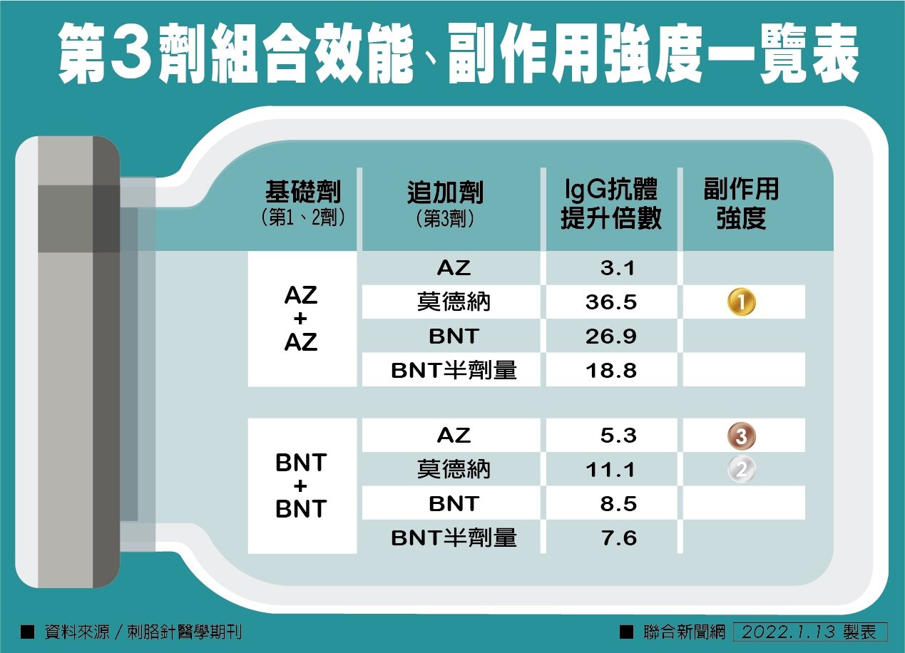 估計至1月底約有768萬人符合施打資格。《聯合新聞網》整理報導,讓您一目瞭然追加劑該怎麼選,副作用少、保護力最好。