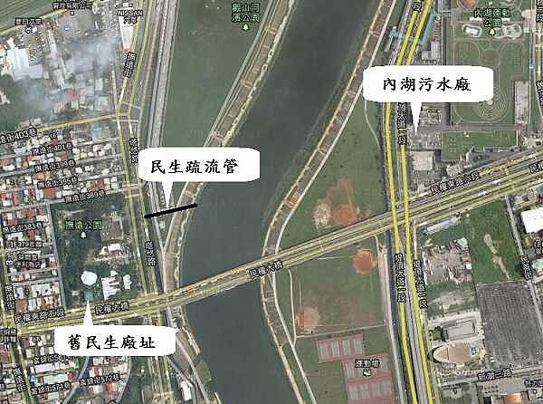 衛工處表示,污水幹管疏流工程包括民生及士林等兩處疏流系統。其中民生疏流系統設置於松山區塔悠路舊民生污水處理廠內,主要疏流汐止南港主幹管的超量水;士林疏流系統則設於士林區承德路標準檢驗局後側,以疏流士林主幹管超量水。汐止南港主幹管及士林主幹管最終匯集至迪化污水抽水站,再分送至迪化污水處理廠或八里污水處理廠。污水幹管收集區域廣闊,且是集中至污水抽水站或處理廠,本疏流工程特別選定在幹管中、上游各設置0.6CMS疏流抽水機3台,遇有超量水即可啟動排入基隆河,以避免人孔滿溢並減輕處理廠負荷。