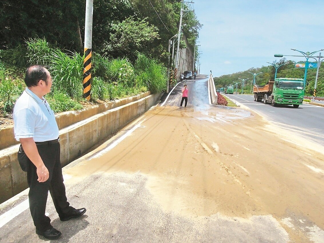 文/胡蓬生雨勢不斷,造橋鄉台13甲線公路外環道和北苑社區的路口出現大片淤泥,機車行經險象環生,引起居民關切,鄉長黃純德昨天帶人查看,無法確認淤泥來源,決移請縣府追查。