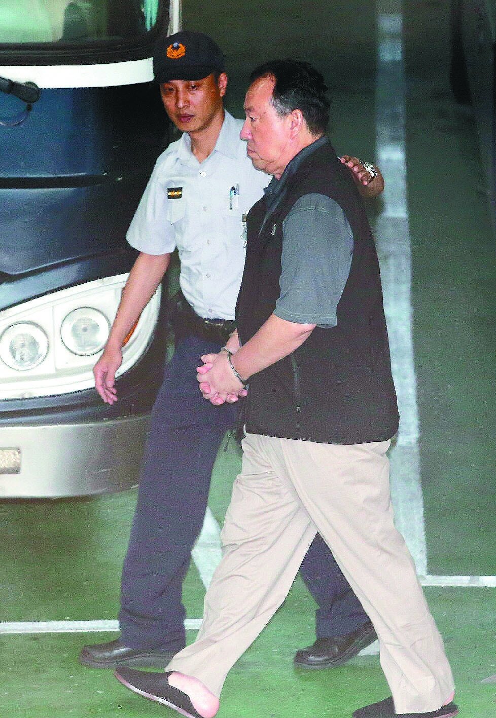 葉世文昨天穿POLO衫、背心、卡其褲、功夫鞋,接受檢方偵訊後,戴上手銬由法警戒護上警備車,押返台北看守所。