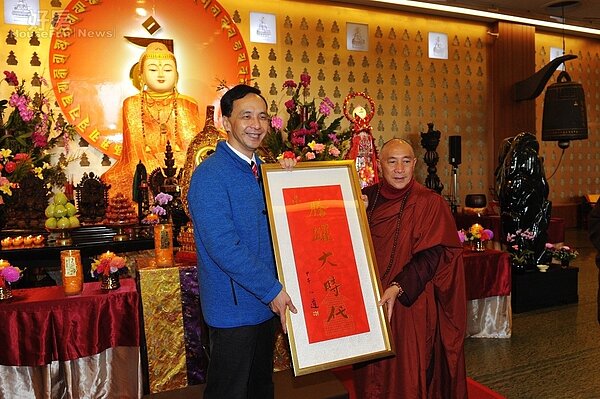 朱市長在三貂角升旗典禮後,隨即前往附近的靈鷲山無生道場參香、祈福、點燈,祈求全民平安順遂,新北市各項建設工作順利進行。他感謝靈鷲山在心道法師的帶領下,在佛教推廣、公益事業、品德教育及心靈環保等的貢獻,希望佛法智慧能傳播得更遠,使更多人受到庇護。