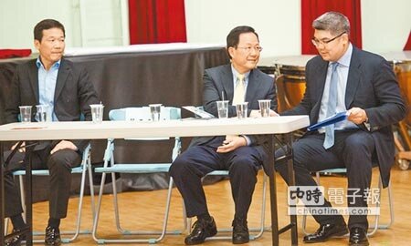 國民黨台北市長黨內初選競爭白熱化,國民黨台北市黨部昨晚在萬華區南門國中舉行首場政見說明會(見下圖,鄭任南攝),立法委員丁守中強調政績與基層資歷,連勝文則主打青年政策與東西軸線翻轉,2人並針對都更議題提出見解;雙方支持者也於散場後對喊加油、凍蒜來較勁。