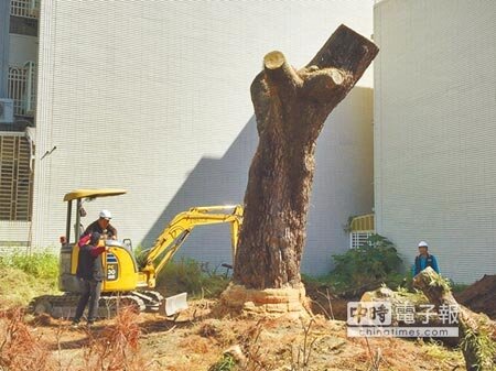150歲老琉球松樹,去年9月遭人蓄意以硫酸液體戕害致死,經搶救仍回天乏術。(圖/中時電子報)