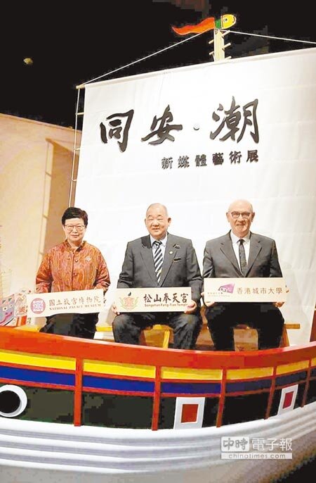 松山奉天宮三度與國立故宮博物院合作,即日起在奉天宮舉辦「同安‧潮-新媒體藝術展」(見圖,柯伶穎攝),以互動科技作品為骨幹,呈現故宮院藏豐富的同安船史料,松山奉天宮主委陳博貞、故宮院長馮明珠、立委費鴻泰等人皆出席開幕典禮。