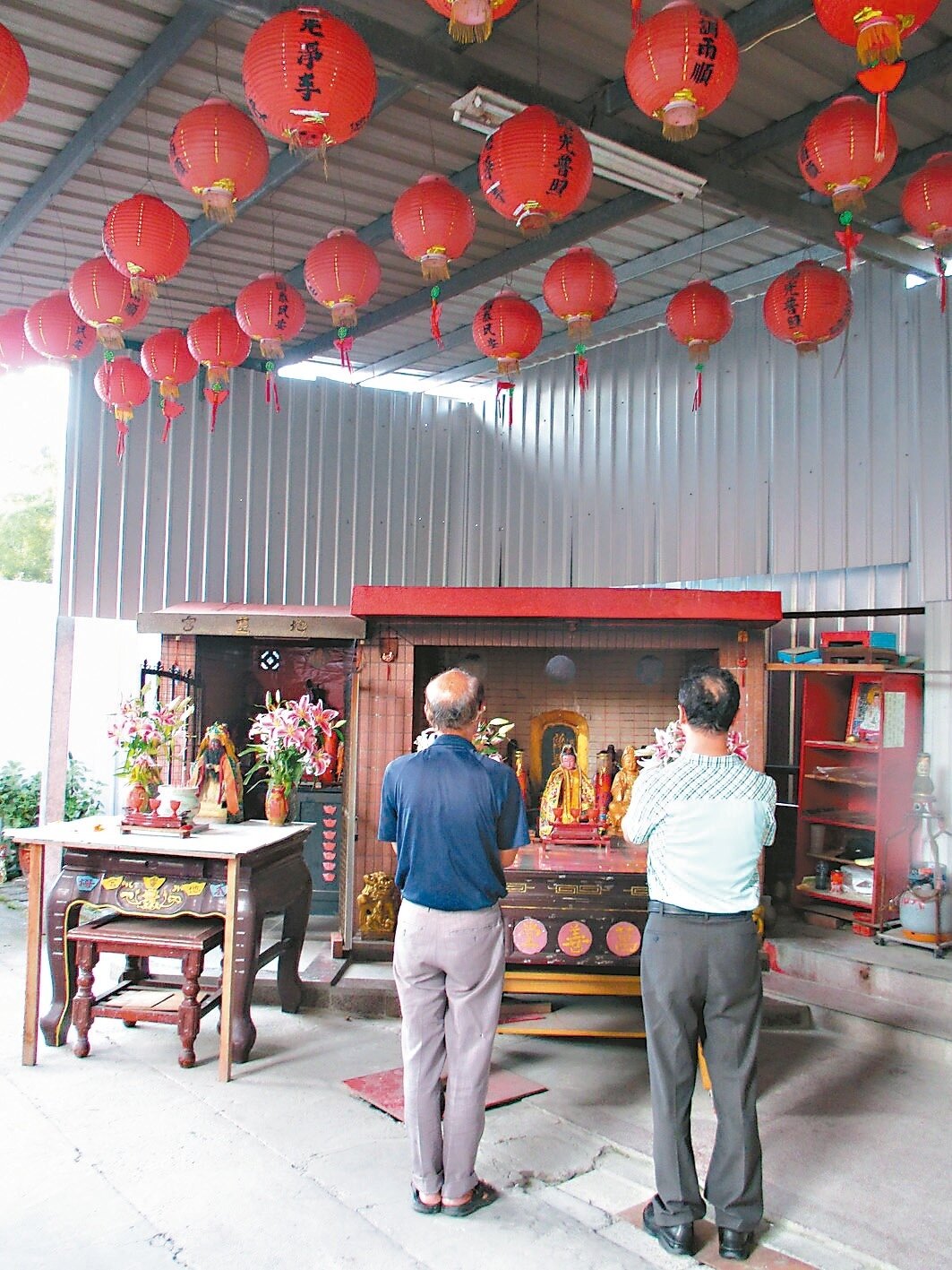 「萬善堂」旁邊已被工地圍籬隔起。仇世屏說,他們不求蓋多華麗的廟,「在公宅任何一個角落都好」,只希望能留在當地,讓居民就近祭祀。