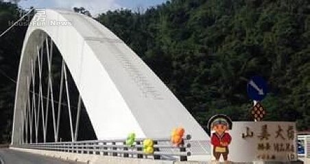 嘉義縣阿里山鄉在莫拉克風災中造成山美、新美、茶山3座橋樑沖毀,最後一座完成重建的山美橋,嘉義縣政府28日舉行通車典禮,由行政院重建會執行長陳振川、嘉義縣長張花冠、阿里山國家風景區管理處長曾漢洲、阿里山鄉長陳明利、縣議員汪志敏、社區理事長安麗花等人剪綵。