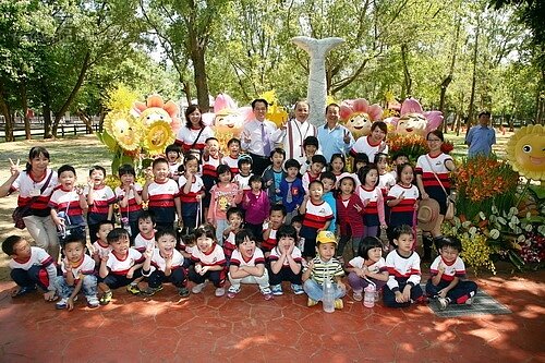 102年台中市后里區花卉藝術文化活動將於10月18日截止,開幕至今口碑相傳,市長胡志強16日在后里區長邱文宏的陪伴下前往參觀,欣賞花藝創意得獎作品,並與民眾親切合照。
