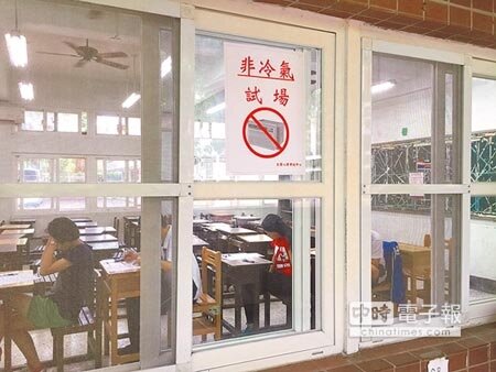 嘉義近月來炙熱難當,幾乎天天高溫35度上下,絕大部分人渴求吹冷氣以求涼快,但嘉義考區有6名考生申請不使用冷氣,嘉中試場特別開闢一間「不使用冷氣試場」,教室門窗打開通風、吹電風扇,成為所有教室門窗緊閉、冷氣機總開動的試場中,獨樹一格的殊景。