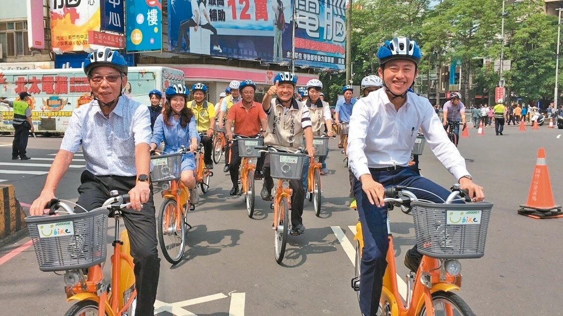 新竹市長林智堅昨天從東門圓環騎Youbike到市政府,宣布新竹市Youbike「試營運」啟動,邀民眾來體驗;市府計畫在今年底前,完成30個站點,超過750輛自行車的建置,方便民眾租借Youbike,輕騎遊新竹。