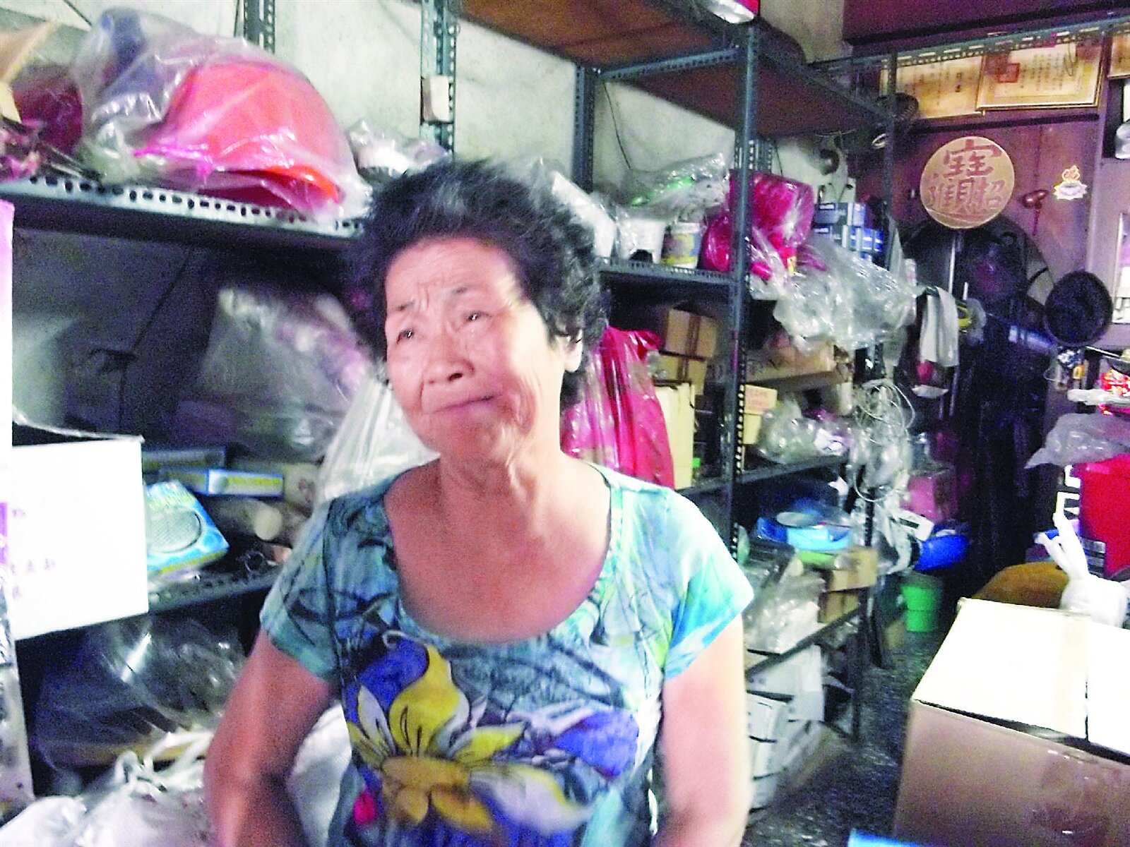 黃阿嬤說,先生曾當過路鄰長、義警,但做好幾樣工作都不如意,生意也做不起來,老年時貸款買棟房子居住兼開五金店,先生在今年2 月過世,享壽83歲,兩人沒有子女,獨留她一人顧店,還有許多存貨。黃阿嬤雖有中低收入津貼,但還要繳房貸,每個月僅有1千餘元過活。