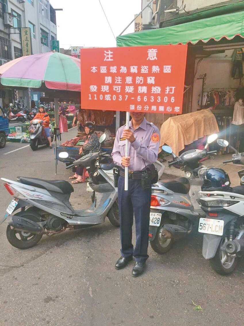 竹南第二市場同樣購物人潮多,為避免民眾財物失竊,竹南派出所平、假日也不定時編排防竊勤務,緊盯市場周邊的可疑人物。
