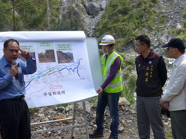立委江啟臣、孔文吉與交通部葉匡時部長昨共同深入中橫公路上線,並由公路總局就地進行簡報;葉部長當場允諾專案編列經費,以三年十億元的規模,再增設二百五十公尺的明隧道,及邊坡強化工程,全面提升台八線臨三十七便道的安全性。