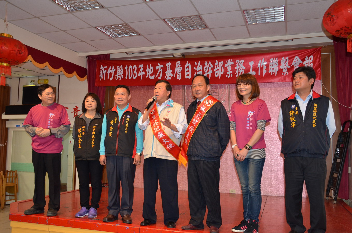 新竹縣新豐鄉舉行村鄰長業務聯繫會報,縣長邱鏡淳感謝地方基層幹部的用心與支持,讓縣政推動順利,並指出,新豐鄉各項建設也正在進行中,如日前國防部撥用新庄子營區2.52公頃土地,縣府、鄉所已共同向中央爭取3500萬,預計規劃公二公園。因應營區特色,將向國防部爭取國軍汰除裝備的戰車展示,增加觀光號召。