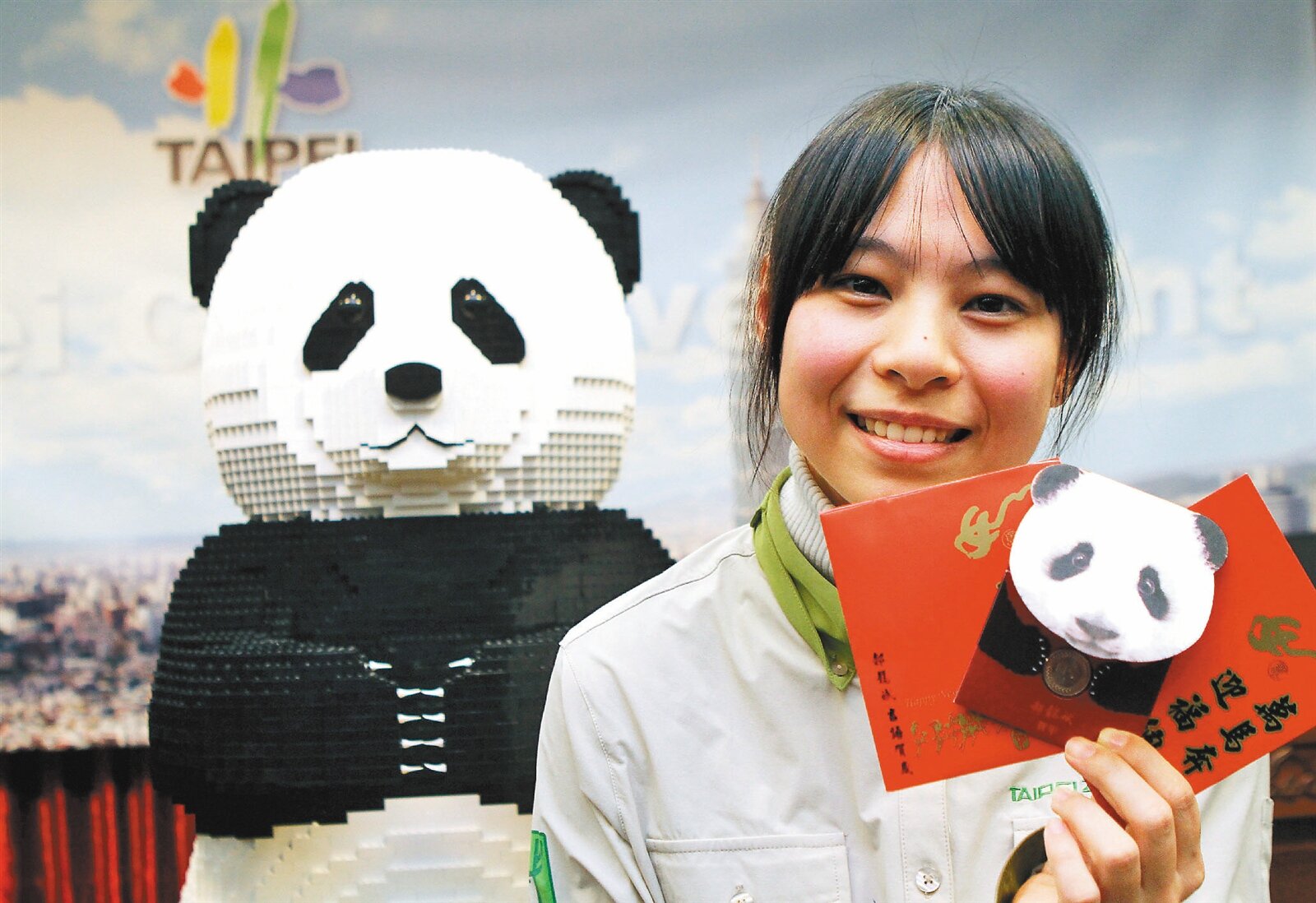 市長郝龍斌公布圓仔發財金,圓仔發財金是動物園員工陳易瑩設計的 。(記者曾吉松/攝影)