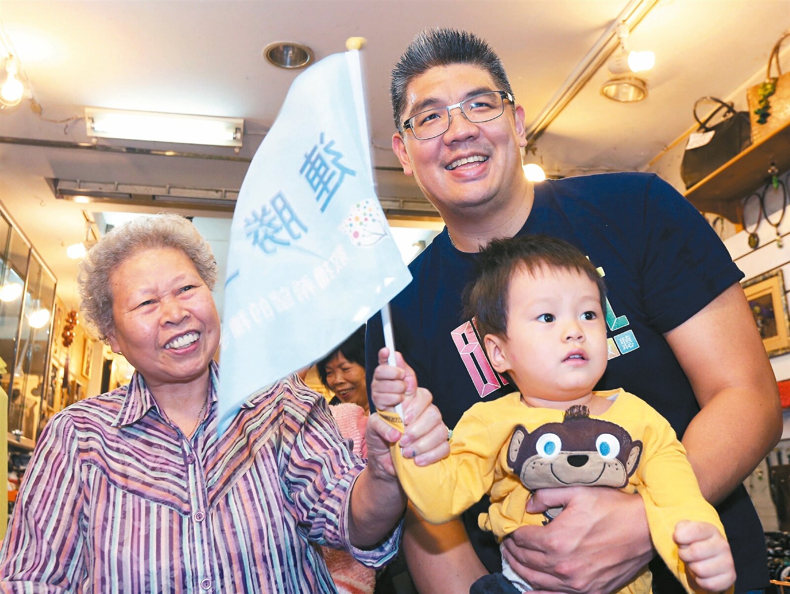 國民黨台北市長候選人連勝文(右),昨天到城中市場拉票,受到鄉親熱烈歡迎。