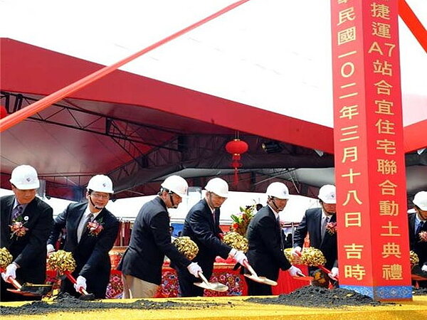 機場捷運A7站4463戶合宜住宅,18日在副總統吳敦義、內政部長李鴻源、縣長吳志揚和四家建商董事長共同主持下舉行聯合動土典禮。吳副總統期望四家建設公司同心力興建最好品質的合宜宅,提供民眾合適的居住環境,吳縣長則表示,A7站合宜住宅,是符合全世界最新TOD(大眾運導向發展模式)的最好例子,而機場捷運通車後,將會帶來預期的效益。