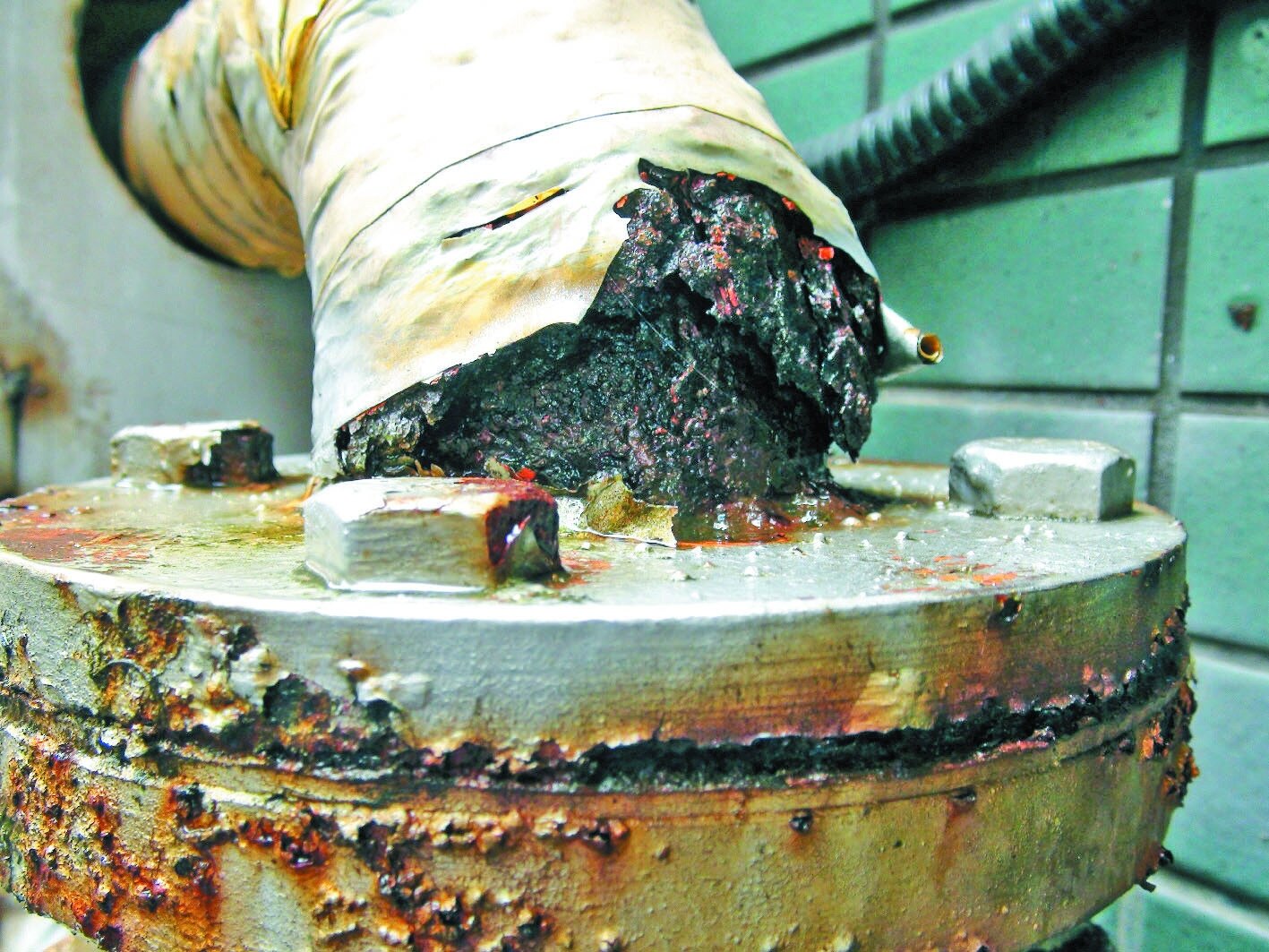 社區大樓管委會總幹事周明源表示,7天前他在大樓後方小巷道割除雜草時,發現牆角下的天然氣明管已有鏽蝕情形,他循管路查看,赫然看見供應大樓天然氣源頭的鑄鋼氣閥鏽得更為嚴重,感覺已鏽到裡面,管線隨時可能都會裂開漏氣。