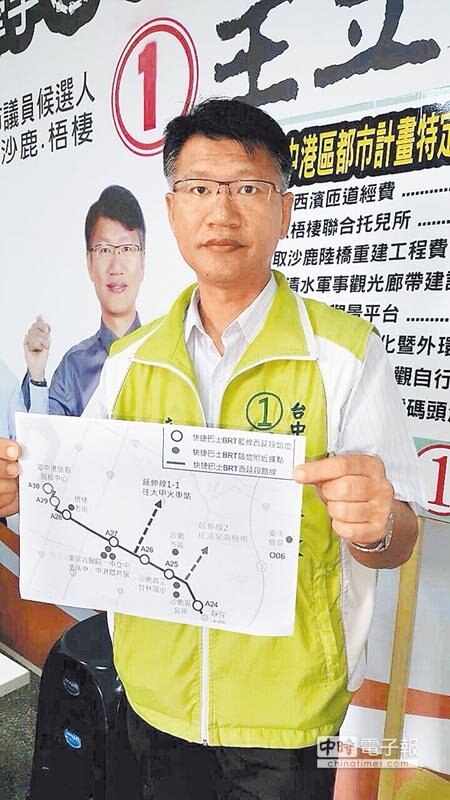BRT梧棲段規畫圖,站與站的距離竟相差1公里以上,市議員候選人王立任盼市府不要讓港區邊緣化。