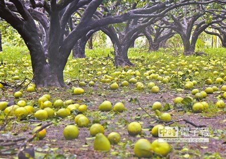 果農心淌血麥德姆颱風造成台東文旦落果嚴重,但並未達天然災害補助標準。(黃力勉攝)