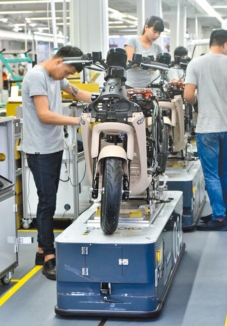 汽車業零售業因新車及電動機車熱銷,年增9.3%。圖為睿能創意(Gogoro)智能工廠生產線。(中時資料照片)