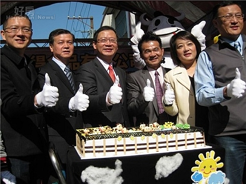 為伴手禮績優廠商打氣加油,吳志揚縣長日前到八德市參加「桃園縣十大伴手禮」美得食品工廠新廠落成開幕活動, 立法委員孫大千、八德市長何正森、縣府副秘書長蔡麗娟、工商局長陳淑容、環保局長陳世偉等都列席參加,場面熱鬧,吸引許多民眾前往參觀。
