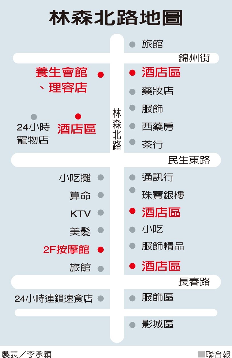 夜幕低垂,一般上班族拖著疲憊身心返家休息之際,林森北路上各類招牌燈、霓虹燈才惺忪地逐一點亮起來,監督著鶯鶯燕燕成群遁入紙醉金迷的大樓裡,也宣告商圈今天的夜生活開始了。