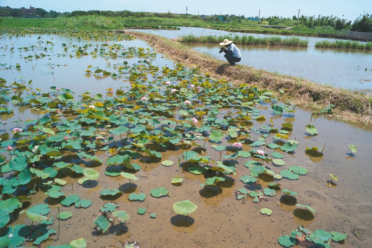 夏天一到,金山清水濕地荷花盛開,吸引不少民眾造訪,但今年花況不如往年,6月中花田仍稀稀疏疏,令不少遊客大感失望,笑說「都被小白鶴給吃光了!」老農黃正俊表示,小白鶴飛走1個多月,近期又開始播種,花期會晚1至2個月,想賞花得再等等。