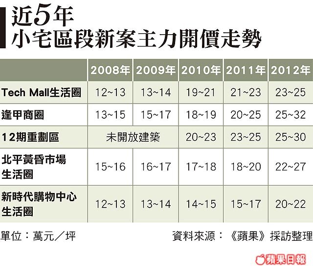 台中市區房價每坪突破20萬元,不少建商紛推1~2房小宅,主力總價600~800萬元,空間與價格符合單身族、首購族與小家庭購屋預算,雖然空間不大,但因位處市中心,周邊有成熟生活機能與交通設施加持,總價低且生活機能佳是市區小宅最大賣點。