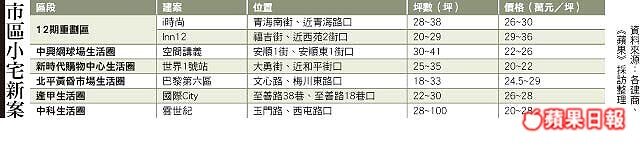 市區小宅除了空間不大,戶數也多不到百戶,例如「i時尚」、「Inn12」分別只有82戶、84戶,「空間講義」與「世界1號站」因位處發展成熟區段,基地面積都不到250坪,總戶數分別僅有25戶、30戶。