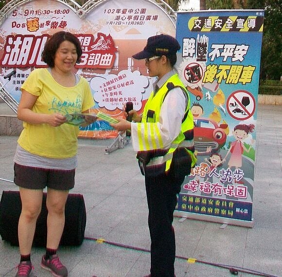 涼風徐徐,入秋了,許多民眾在假日,來到台中公園走走,在湖心亭附近有個舞台,民眾趨前看看,站個好位置欣賞音樂節目,音樂節目進行到一半,怎麼有個警察架起布幕,拿起麥克風,劈頭就對大家開始宣導有關行的安全,這是怎麼回事啊,民眾好奇在問。